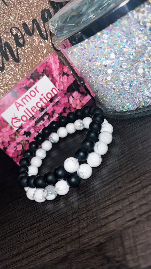 His n Her black/white beaded bracelet set